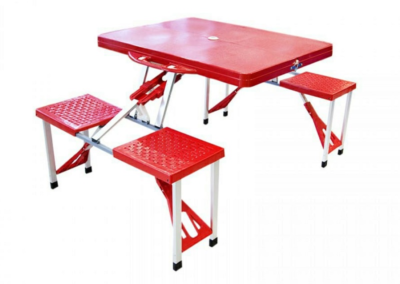 Satu set meja dan empat kursi lipat yang mudah dibawa saat piknik. Desain koper praktis dengan bobot ringan, cocok untuk kegiatan luar ruangan.